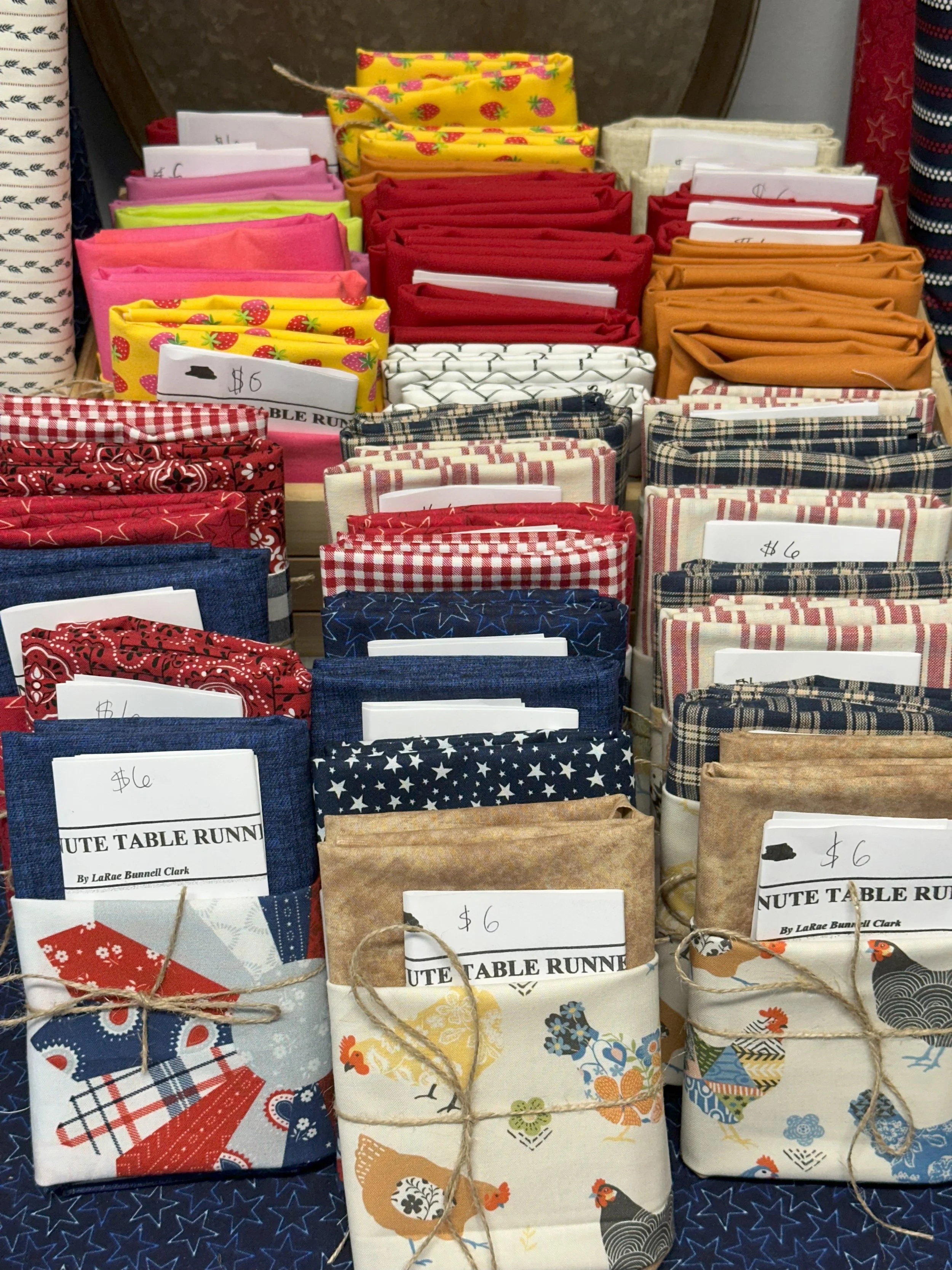 Categories: All Pre-Cut Fabrics New Arrivals Christmas in July We Love the USA Riley Blake Collection Moda Collection Fabric Quilts and More Quilt Books Quilt Patterns & more Notions Needles and Things Batting Thread Cutting All / Farm Stand Quilt Kit $145.00 10 minute Table Runners $0.00 3 Yard Quilt Kits $15.00